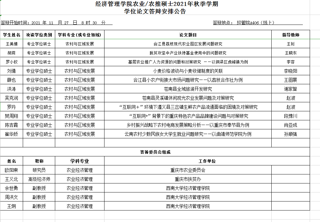 2021年秋季农业硕士学位论文答辩时间安排公告