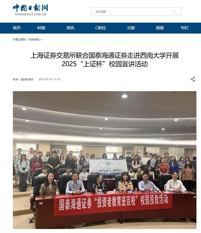 在公司开展的上交所2025“上证杯”走进校园宣讲活动获中国网、中国日报网等多家媒体报道