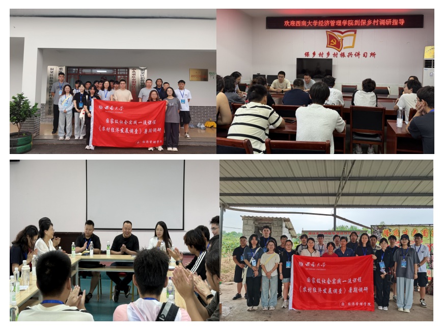 “广大青年要厚植家国情怀、涵养进取品格,以奋斗姿态激扬青春,不负时代,不负华年”。新时代青年成长于互联网时代,眼界宽、思路活、见识广,应在乡村振兴的舞台上发挥自身优势。为深入了解乡村经济发展情况,将课堂所学与社会实践深度融合,推进当地乡村经济提质增效,2025年6月29日至7月2日beats365官方网站农林经济管理专业国家级社会实践一流课程《农村经济发展调查》2025年暑期集中驻村调研活动分别在重庆市铜梁区侣俸镇保乡村、石蛤村,涪陵区二渡村和长寿区紫竹村开展。2023级农林经济管理专业本科生共41人,分为3支队伍,围绕12个主题展开本次集中调研。《农村经济发展调查》课程暑期调研分为集中调研和分散调研等多种形式。本次集中驻村调研由农林经济管理系杨丹教授、高静教授和徐亚东副教授带队,张正严教授、杨晋渝副教授以及部分硕博士生参与了调研,员工队伍主体为大二本科生,其余年级员工则采用分散自主调研。