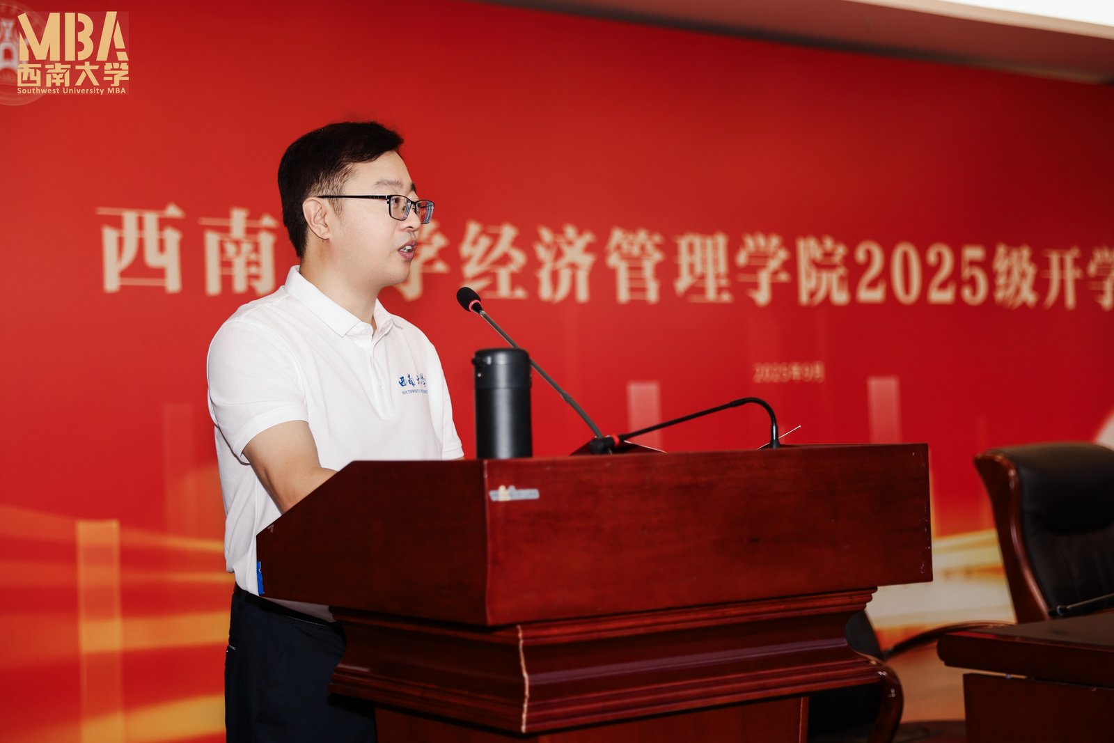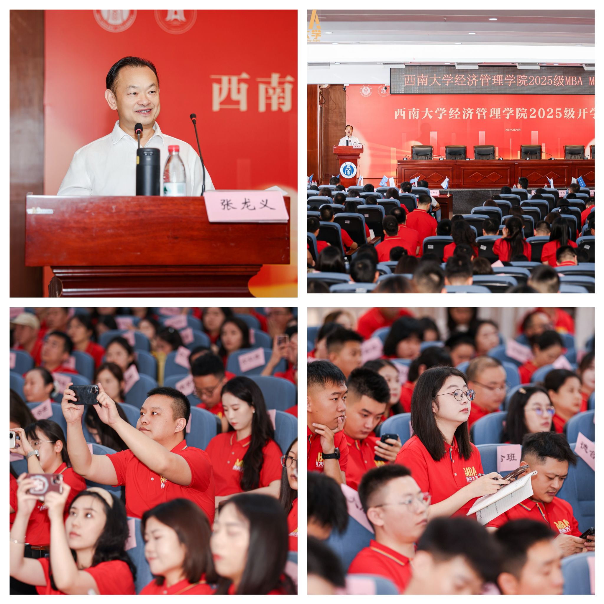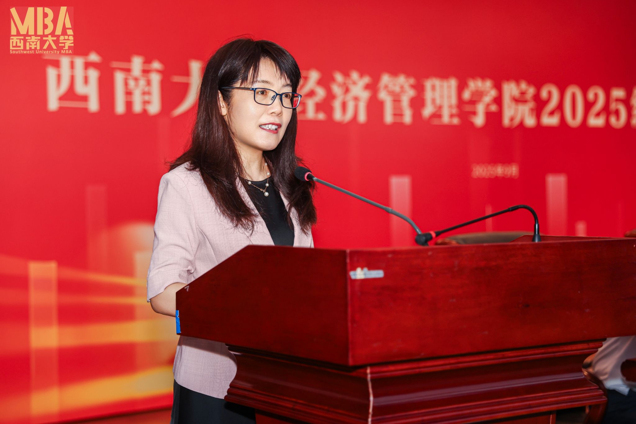 赵玉芳代表公司欢迎和祝贺2025级MBA、MPAcc、MTA全体新同学。她表示,作为教育部直属,教育部与农业农村部、重庆市共建的国家首批“双一流”建设高校,beats365官方网站始终以服务国家战略、引领区域发展为己任,站在中国式现代化推进的关键节点,公司正紧扣时代需求,全力推进专业学位教育提质升级。她勉励同学们要扎根时代实践,践行知行合一,做服务发展的实干者,要拥抱变革创新,锤炼系统思维,做引领未来的开拓者,要秉持共创共享,强化团结协作,做担当使命的奉献者。她希望同学们珍惜学习机会,汲取百年西大的精神滋养,潜心治学、追求卓越,在高质量发展和民族复兴征程中书写精彩篇章。
