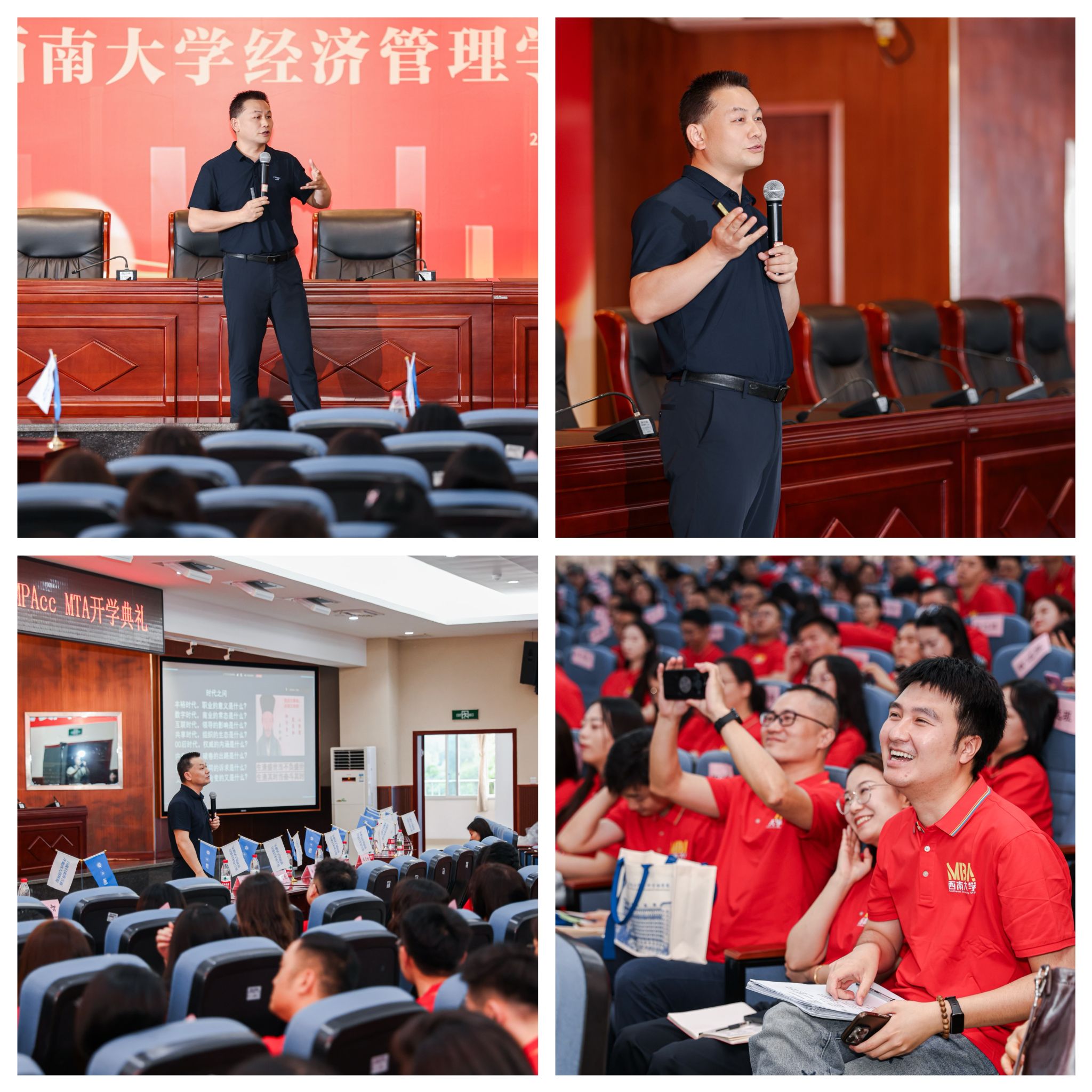 在入学导航讲座中,非全专硕教育中心副主任金绍荣强调,读商科研究生不仅要学新知,提技能,也要悟商道,修身心,更要尊德性,务苍生。他鼓励同学们在“识变、应变、求变”中转变场景、心态与行动,通过“三变”促“三学”以固“三力”,不断增强自身“学在西大、商行天下”的决心和信心。