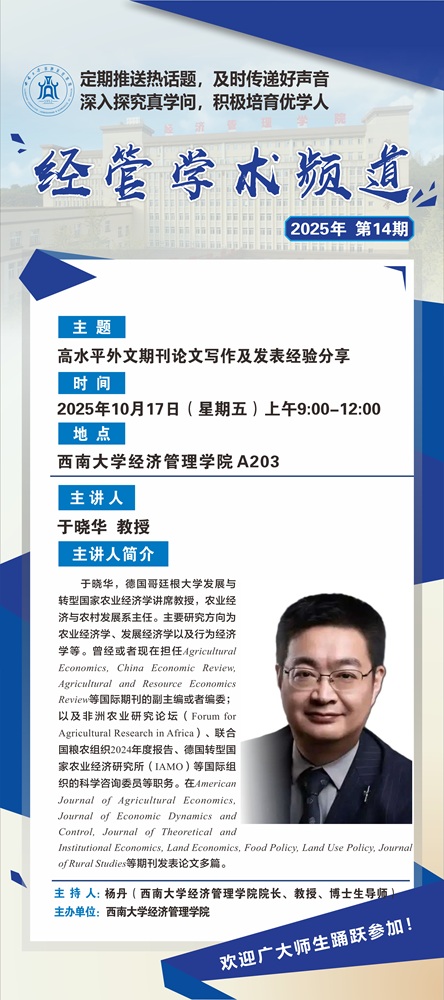 农林经济管理学科发展论坛︱高水平外文期刊论文写作及发表经验分享
