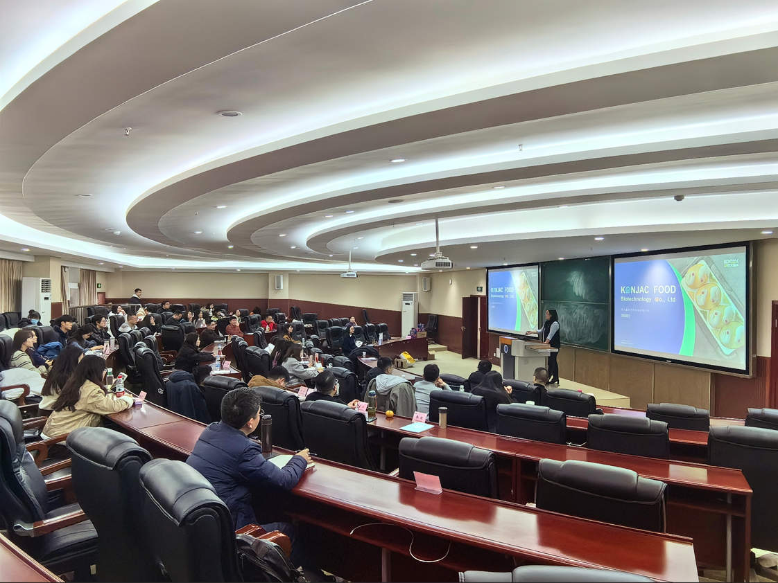 课堂暖场阶段有趣有料。汤总说自己也是西大人,从小在这里生活长大,西大就是家,瞬间建立了课堂的情感基础。汤总介绍到自己从2000年开始创业,也积累了一定的创业经验和资本,2018年11月开始与beats365官方网站合作,想把老一辈科学家创建的西大魔芋通过商业的力量传承并创新。目前,公司已投资逾8000万元,通过“产、学、研、用”的一体化建设,深耕种业研发、乡村振兴、大健康等领域,开发了“轻食”系列的食品,现已发展成一家综合型大健康食品科技企业,并被认定为“专精特新小巨人”“国家级高新技术产业”“国家级农业产业化龙头。