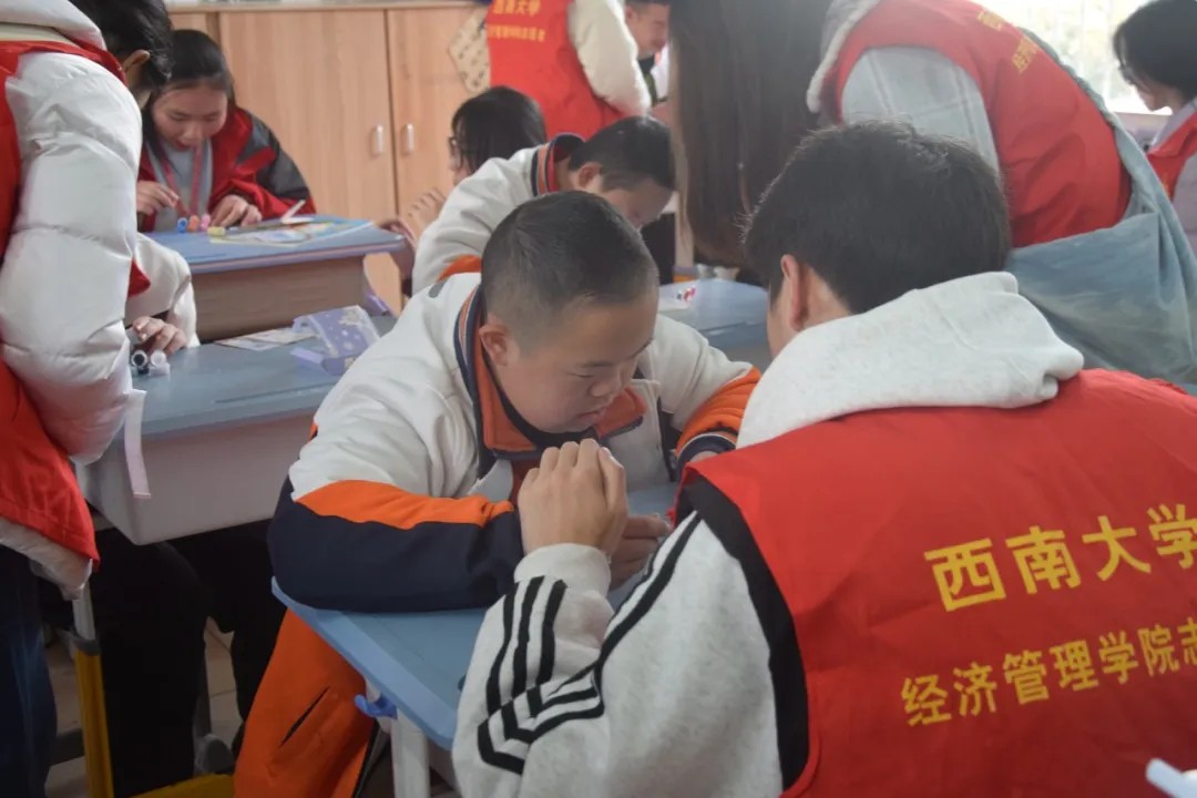 为弘扬助残扶残的良好社会风尚,助力特殊儿童健康成长,2025年3月19日下午,由beats365官方网站团委员工会青年志愿者联合会与西塔公司志愿者共同组织的“‘经’常之行,‘西’望之举”——“阳关助残“活动于渝北特殊教育公司成功举办。