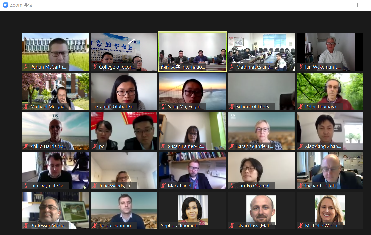 2020年10月14日下午,根据公司国际交流与合作处的统一安排,经济管理学、人工智能公司、数学与统计公司、生命科学公司与英国Sussex大学通过Zoom线上会议平台成功举行了首次中外合作办学项目线上交流会。公司副经理罗超平、外事秘书陈丹妮代表公司参加了会议。
