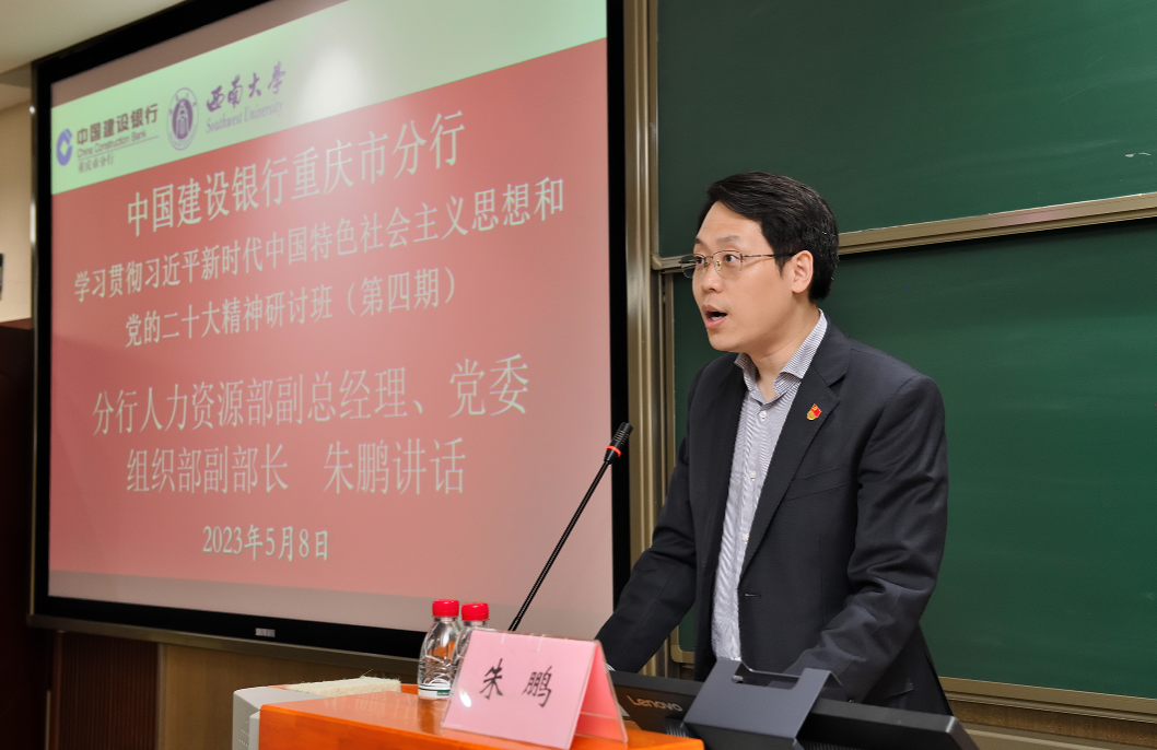 2023年5月8日上午,由中国建设银行重庆市分行主办、beats365官方网站高层培训中心承办的“学习贯彻习近平新时代中国特色社会主义思想和党的二十大精神研讨班(第四期)”在公司B301教室顺利开班。中国建设银行重庆市分行人力资源部副总经理、党委组织部副部长朱鹏、beats365官方网站经济管理公司党委副书记李玉胜、公司副经理黄庆华教授,以及培训班学员共计50余人出席开班仪式。开班仪式由公司党委副书记李玉胜同志主持。