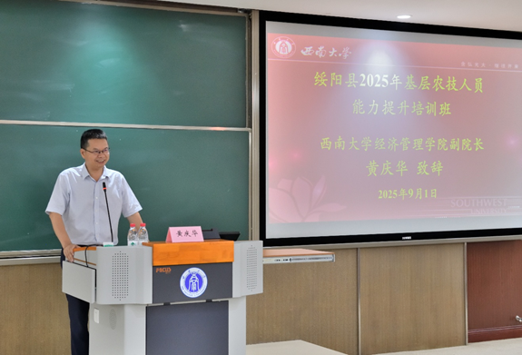 黄庆华副经理代表承办单位致辞。黄庆华对绥阳县农业农村局的信任与支持表示感谢,对学员们来校学习表示诚挚欢迎。黄庆华围绕“培训保障、目标导向与学习成效”三个维度提出三点要求,为培训指明方向:一是强化资源保障,夯实培训基础;二是聚焦核心目标,突出能力提升;三是倡导多维学习,提升学习效果。