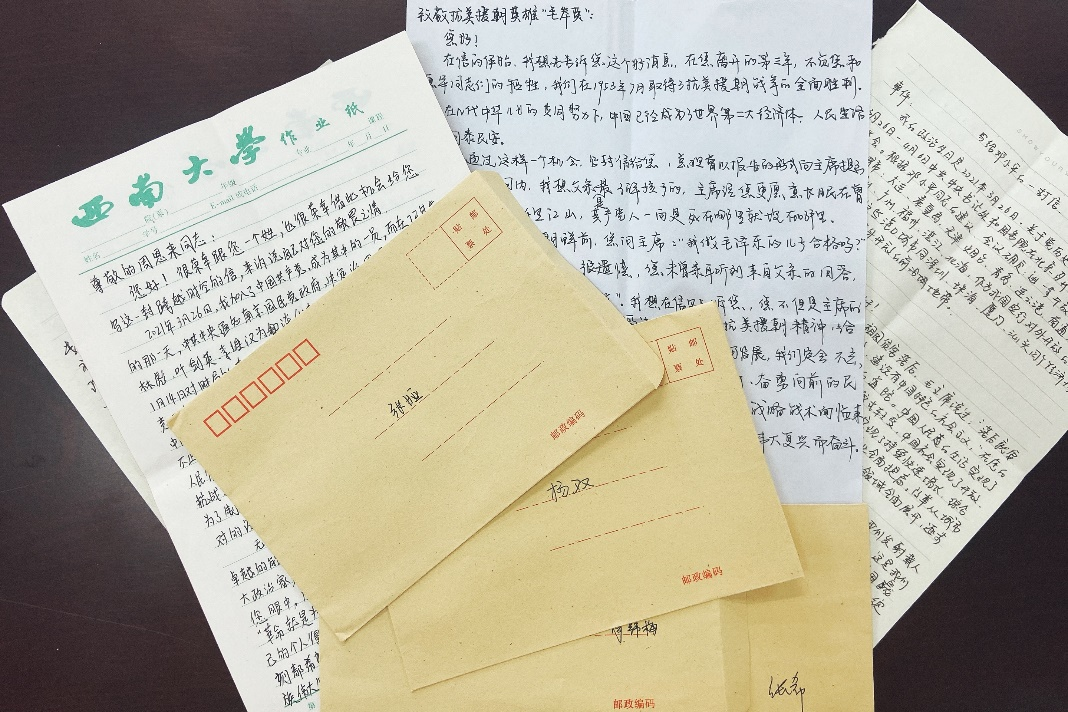 “今日中国如您所愿,仍有佳音以待后言。”活动现场,支部6位党员对党史故事进行讲述并朗诵了信件。伴随着舒缓的音乐,党员同志们声情并茂地将李大钊、周恩来、邓小平、毛岸英等同志的革命故事娓娓道来,他们在书信中以回忆光辉事迹表达对先辈的缅怀,以细数今日中国的伟大成就表达对先辈的告慰,以思考个人成长历程表达青年党员继承先辈志向,接力奋斗的决心。如支部党员张娅在信中所说,“这盛世如您所愿,我们会继续为实现中华民族伟大复兴而努力,请您静待佳音。”