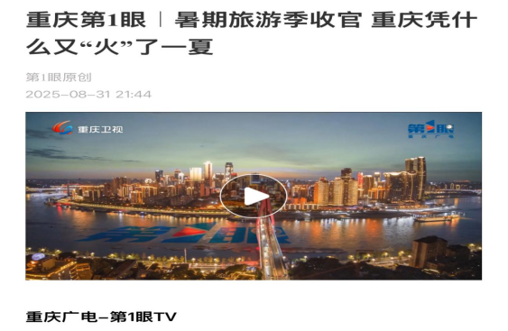 2025年8月31日,重庆广电-第1眼TV播出题为《重庆第1眼|暑期旅游季收官 重庆凭什么又“火”了一夏》的新闻分析。beats365官方网站旅游管理系主任魏鹏教授接受了重庆广电-第1眼TV吴霜等记者的采访。