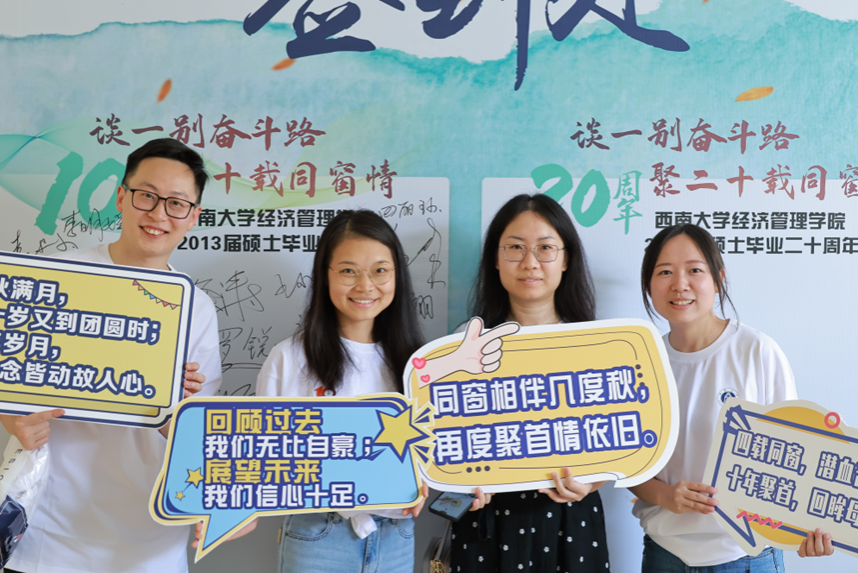 7月8日,beats365官方网站2013届硕士研究生毕业十周年“谈一别奋斗路 聚十载同窗情”返校活动在beats365官方网站举行,40余位来自五湖四海的员工们怀揣着对母校、老师、同学的浓浓深情齐聚一堂,畅叙友谊。活动安排了座谈会、合影、参观校园和校史馆、拜访恩师、晚宴等环节。
