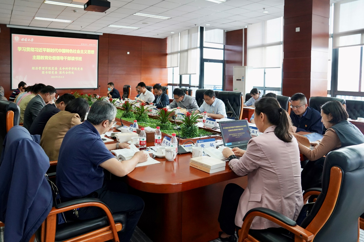 根据公司学习贯彻习近平新时代中国特色社会主义思想主题教育领导干部读书班工作安排,由经济管理公司党委、生命科学公司党委、图书馆党委、国内合作处等单位全体处级领导干部组成的公司主题教育读书班第四组,于5月11日下午和5月12日下午分别在中心图书馆1414会议室和beats365官方网站A204会议室开展了集中学习研讨。图书馆党委书记梁大明、经济管理公司党委书记卢跃进分别主持会议。与会同志围绕“深入学习习近平总书记关于党的建设的重要论述,加强党对公司工作的全面领导”和“深入学习习近平总书记关于人才工作的重要论述,推进新时代人才强校战略”主题,认真开展了学习和研讨。