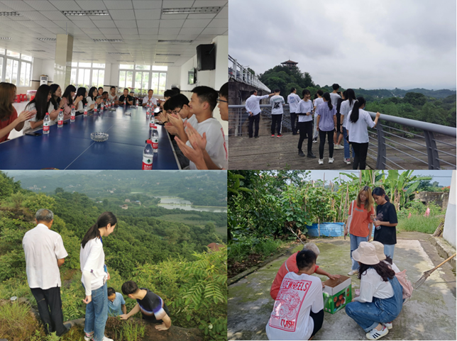 在与睦和村民、新型经营主体进行一对一的访谈过程中,各小组成员主要针对农村电商发展、宅基地退出意愿、农旅融合发展、经营乡村等调研主题,搜集案例资料并填写相关问卷。在与六位新型经营主体负责人开展的座谈会中,各调研小组针对其果树栽植、牲畜养殖、电商营销等产业情况进行了充分交流,领悟创业精神、交流创业经验、学习创业特色、提出创业建议。在田园综合体考察活动中,刘书记带领调研师生考察了睦和村的村容村貌,并考察了荔枝和龙眼果园、脐橙基地、枇杷山基地等田园综合体,向同学们讲解了辨识龙眼树和荔枝树的植株特征,以及种植技术差异等,并登上枇杷山山顶鸟瞰睦和村全貌,给同学们上了一堂生动的农学概论课。