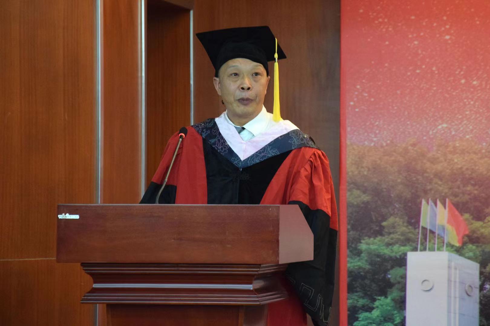 涂建军教授作为教师代表发言,表达了对毕业生的热烈祝贺和诚挚祝福,希望毕业生能够顺利度过人生的“断奶期”,保持开放的胸怀,拥有强大的判断力、坚定的意志力,勉励毕业生们作为敲响第二个百年启航钟声的毕业生,肩负起时代赋予的重任,努力奋斗,为青春增彩。