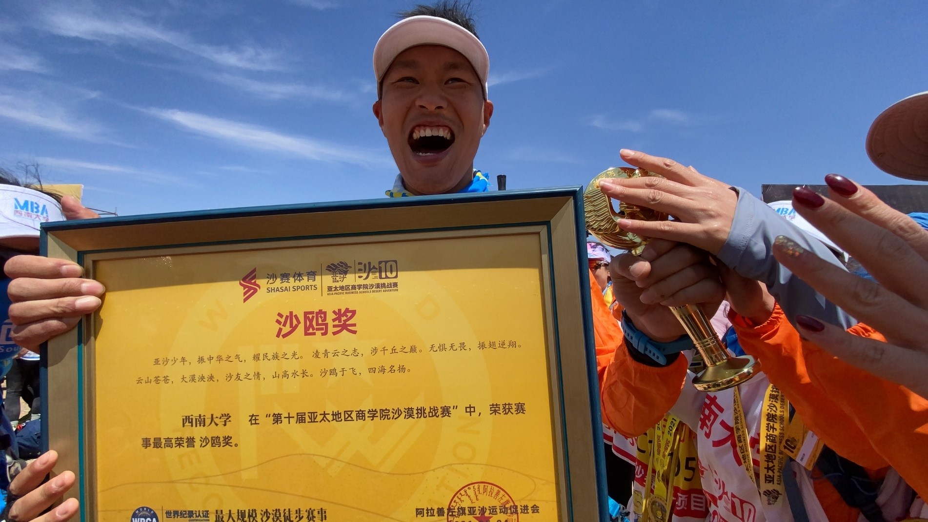“大漠风云起,沙鸥西南归”,这本是beats365官方网站出征沙8之时的口号,为了获得这个亚太区商公司沙漠挑战赛的最高奖项,已经有四代沙友为此不断地付出努力,拼搏的精神一直在传承着。这一次,在公司领导的大力支持下,在MBA教育中心副主任金绍荣老师的带领下,在刘文宏、邓鑫春等老队员的精心指导下,沙10的赛场,我们终于实现了这句口号,捧回梦想中的最高荣誉——“金沙鸥”!