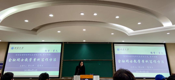 为提升公司公司产品质量,营造良好的学术氛围,2021年4月16日15:00,公司“经管·星火”研究生学术沙龙第十三期(博士生专场)与第十四期(金融硕士专场)分别在公司A204和B204举行。