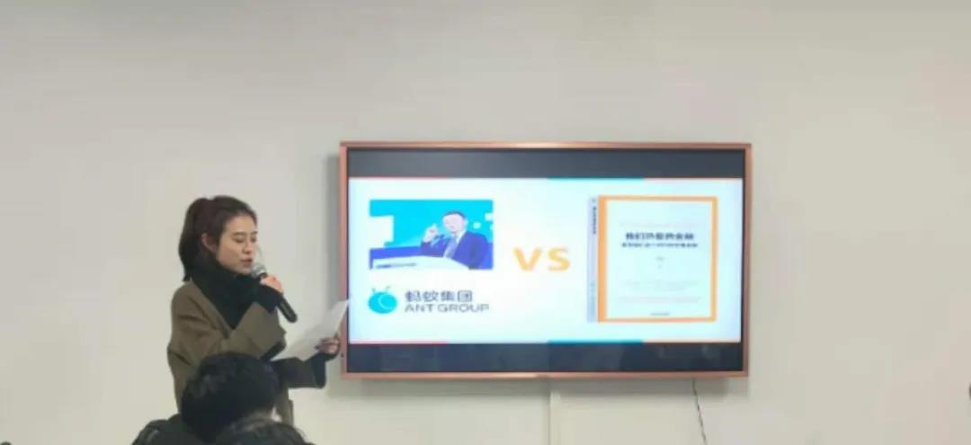 贺文瑾同学分享《我们热爱的金融》,她认为该书兼具学术性和艺术性,体现出作者作为一个金融人的情怀。她以马云外滩金融峰会演讲和蚂蚁集团的延缓上市为例,就其中的非系统性风险、创新与监管以及信用体系能否仅以大数据为基础等问题发表看法,接着引出思考:未来的好金融是什么样的?如何建设好的金融?