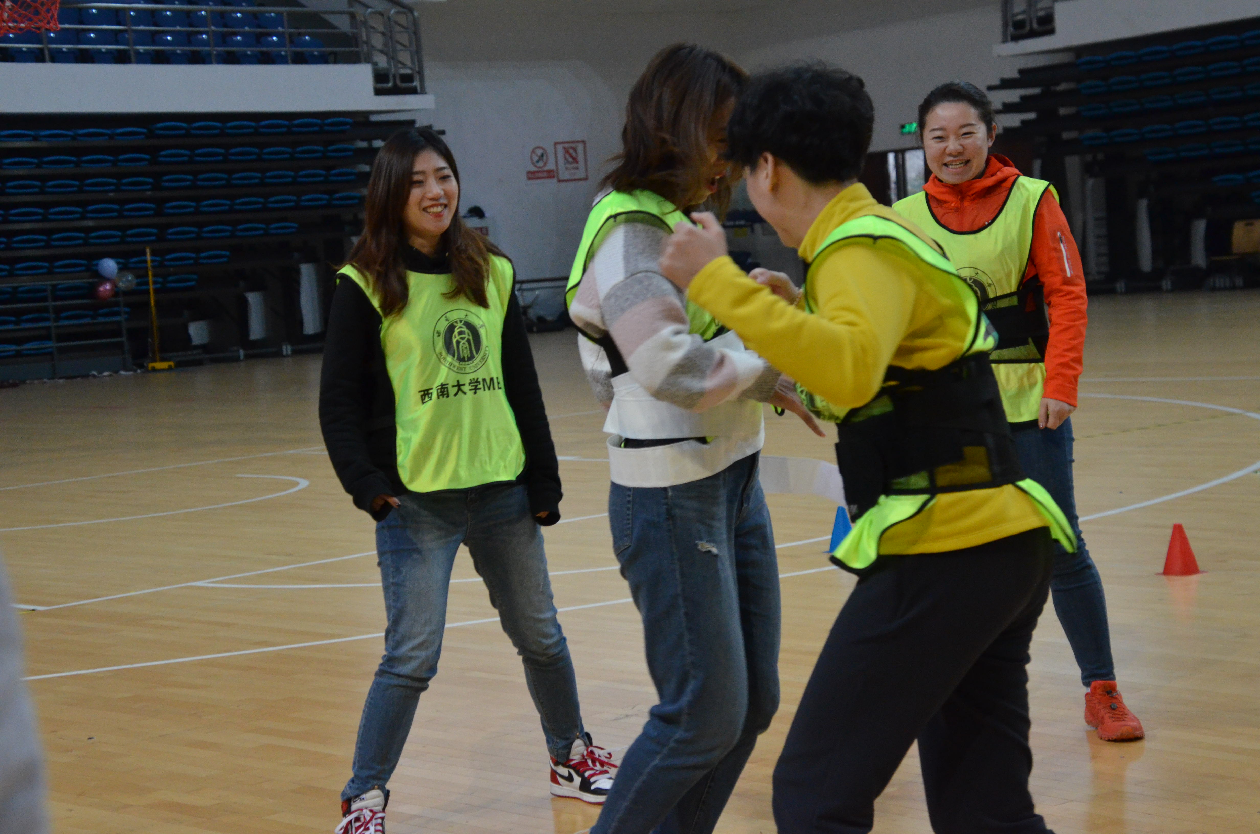 下午2时许,趣味运动会比赛项目正式开始。项目有划拳接力赛、齐心火车、集体跳大绳、蒙眼驼马踩气球、纸杯传递、一穿到底、爱的魔力转圈圈、一圈到底、盲打游戏等。参赛队伍来自2017级MBA员工、2018级MBA员工、2019级MBA员工、MBA任课导师、赞助单位代表、亚沙组委会成员以及西南联盟兄弟院校代表。