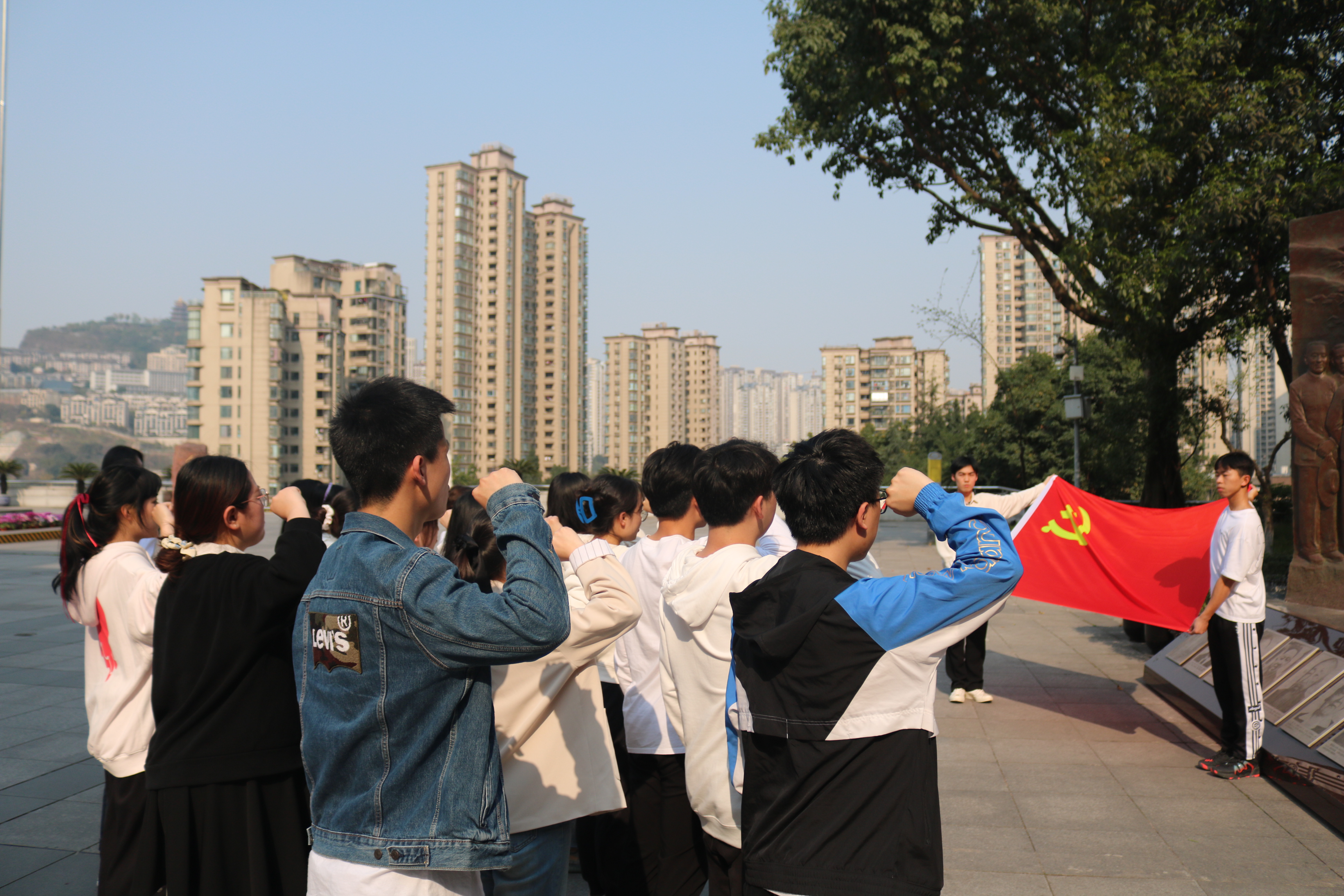 今天,我们在红岩革命纪念馆的见证下,面对党旗宣誓,佩上党徽,这是我们最光荣的时刻,必将一生难忘。今后,我们也必将牢记先辈光辉,不忘峥嵘岁月,年记最初的誓言,为共产主义奋斗终生,尽己所能,服务社会,服务人民。