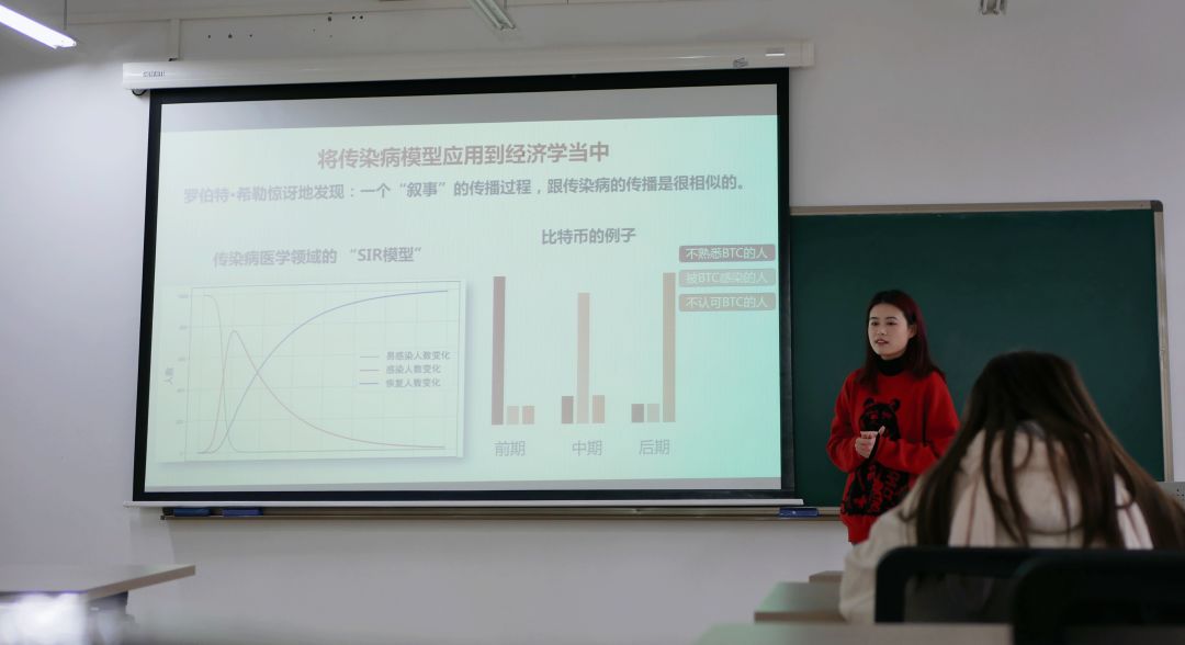 贺文瑾分享的书是《叙事经济学》,书中提到可以通过一首歌、一则笑话、一个理论、一条注解或一项计划,从而激起听者的情感共鸣,使得知识理论在日常对话中得以传播。
