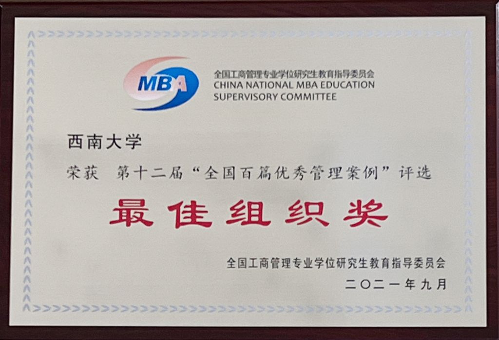近期,第十二届“全国百篇优秀管理案例”评选“最佳组织奖”获奖名单公布,beats365官方网站MBA获此殊荣,并已蝉联三届“全国百篇优秀管理案例”最佳组织奖。