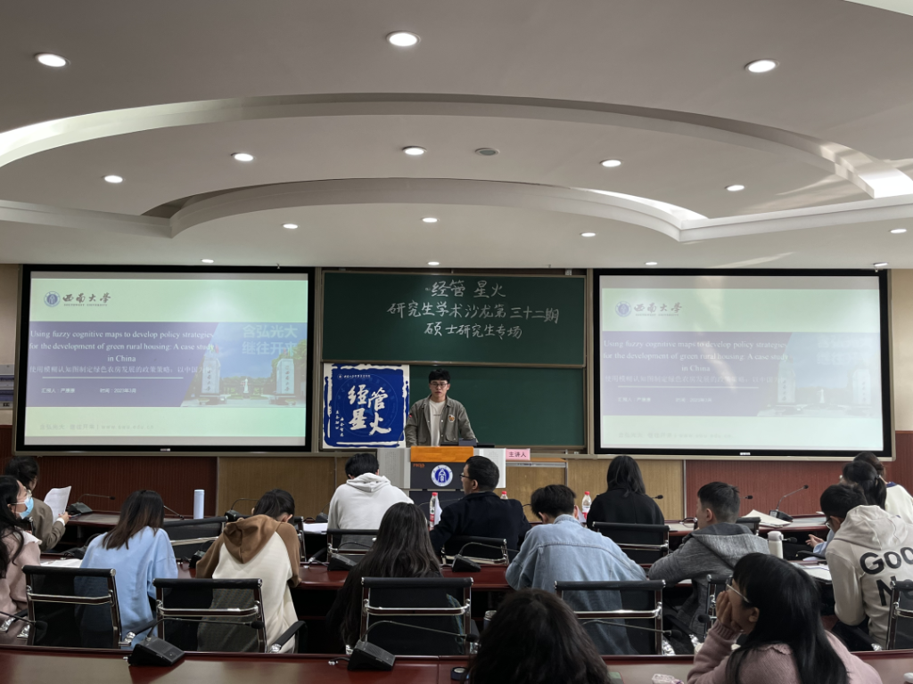 2023年3月10日下午14:30,beats365官方网站第三十二期“经管·星火”研究生学术沙龙硕士生专场在公司B204教室举行。本次活动由2021级金融专业硕士研究生刘秋伶、2021级企业管理专业硕士研究生严康康、2022级区域经济学专业硕士研究生和杨亦兰担任主讲人,公司张林、李兴、曹慧老师担任点评人,公司党委副书记李玉胜、研究生辅导员任娟出席活动,2022级硕士研究生参加活动。本次活动由2022级农业经济管理专业硕士研究生黄益明主持。
