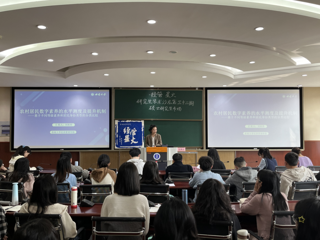 刘秋伶分享论文《农村居民数字素养的水平测度及提升机制——基于不同等级素养和居民身份类型的分类比较》的主要内容。文章从六个维度构建了农村居民数字素养的综合评价指标体系,并利用在重庆、四川等中西部5省所获取的1756份微观调查数据,采用因子分析方法测度农村居民的各类数字素养,并建立Tobit模型实证检验了各类农村居民数字素养水平的提升机制,最终得到基础教育和行为习得是农村居民数字素养提升的显著机制等结论。