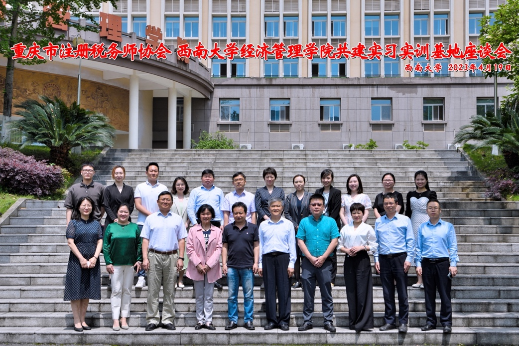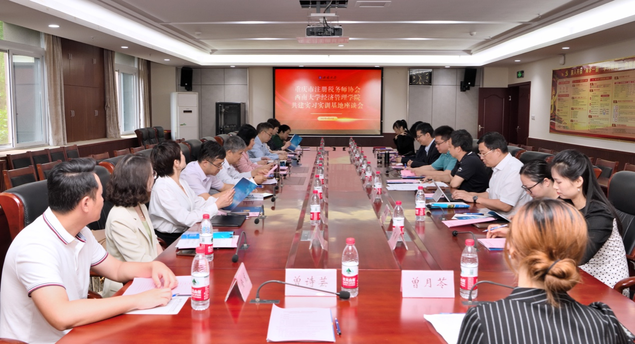 beats365官方网站经济管理公司党委书记卢跃进、党委副书记、纪委书记张其光、党委副书记李玉胜、副经理黄庆华、会计系主任毕茜、辅导员代表,重庆市注册税务师行业党委副书记兼市注册税务师协会会长向垣树、党委副书记兼市注册税务师协会副会长白渝、重庆市注册税务师协会副秘书长杨杰、教育培训部副主任彭靖淋,以及多名税务师事务所负责人代表出席了当天的共建实习实训基地座谈会。