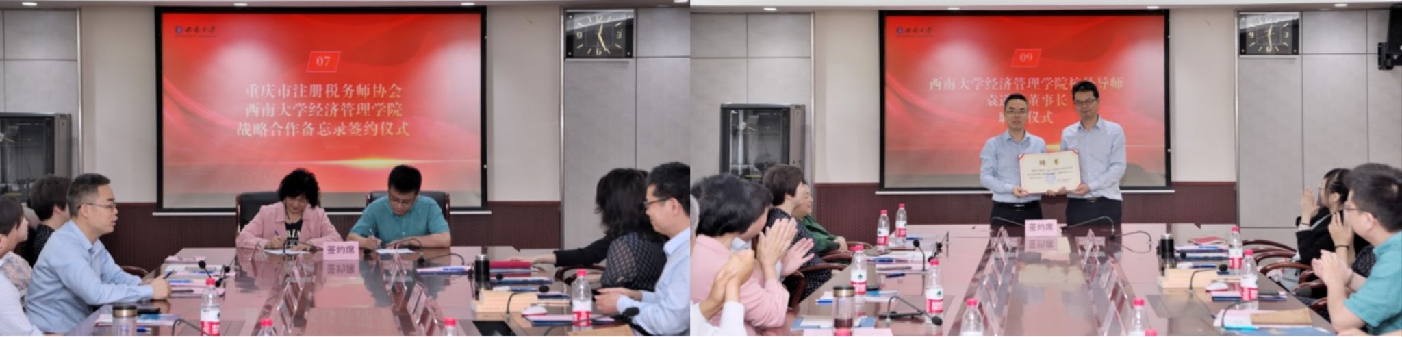 会上,公司党委书记卢跃进对各位参会人员表示了热烈的欢迎,并简明扼要地介绍了beats365官方网站的历史渊源和发展情况。他表示,希望用人单位可以给予公司学子更多的锻炼机会,对公司工作提出有益的建议与指导,以便公司在人才培养方面更准确、更有效、更有力。重庆市注册税务师协会会长向垣树从税务师事务所行业的发展情况和当前的就业形势两个方面分析了行业的发展前景以及目前人才与市场不匹配的就业痛点,并提出在签署战略合作备忘录的推动下,重庆市税务师事务所行业与beats365官方网站实现互利共赢的美好设想。随后,公司相关负责人依次介绍了公司本科和研究生人才培养情况、会计学学科专业建设情况,部分税务师事务所负责人代表围绕推动产教融合及院企合作新方向等方面畅所欲言,并对公司、注册税务师协会和事务所三者在人才培养方面的深化合作提出了众多精彩的宝贵意见。在座谈会的尾声,公司隆重举行了与重庆市注册税务师协会的战略合作备忘录签约仪式,并进行了“实习实训基地”的授牌,为重庆市注册税务师协会副会长兼中税网天运(重庆)税务师事务所有限公司董事长袁道平颁发了校外导师聘书。