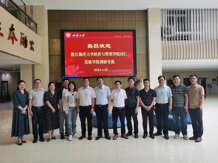 4月20日上午,浙江海洋大学经济与管理公司副经理崔旺来和顾波军一行来公司调研交流,随行人员还包括浙江海洋大学经济与管理公司经济学系主任贺义雄、旅游管理系主任郭旭、公共管理系主任钟海玥、公共管理系副系主任杨帆、旅游管理硕士学位点负责人桑森垚和旅游管理硕士学位点秘书朱亚茹。公司党委副书记李玉胜、教学工作办公室主任王小华、科研和学科发展办公室主任刘建新、MBA教育中心副主任王双龙、MTA中心负责人黄国庆、工商管理系副主任甘晓龙和农林经济经济管理系党支部副书记齐皓天参加了座谈交流。调研交流会由公司副书记李玉胜主持。