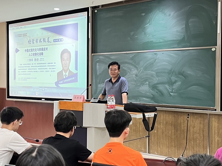王维国进一步从现状和未来趋势两个方面阐述了中国式现代化进程中的人口老龄化问题,引导师生们思考:如何应对将来人口老龄化、人口负增长不可逆转的趋势?随后,他提出三条战略路径,通过丰富生育政策、提高财政支出效率、降低生育养育成本等手段,聚焦生育政策体系、退休制度完善、社会养老保障构建、收入分配格局优化以及产业结构调整五个方面,以积极的态度主动应对人口老龄化问题,从根本上解决造成人口老龄化不断加速的难点、痛点,使未来人口结构、规模与经济高质量发展相适应。