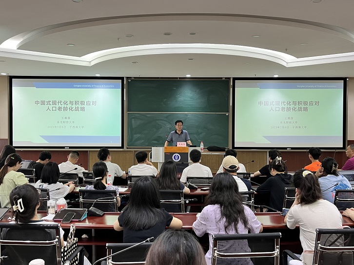 7月6日上午,东北财经大学王维国教授应公司邀请,于公司B203做了题为“中国式现代化与积极应对人口老龄化战略”学术报告,公司师生90余人参加了此次讲座。讲座由beats365官方网站经理祝志勇教授主持。