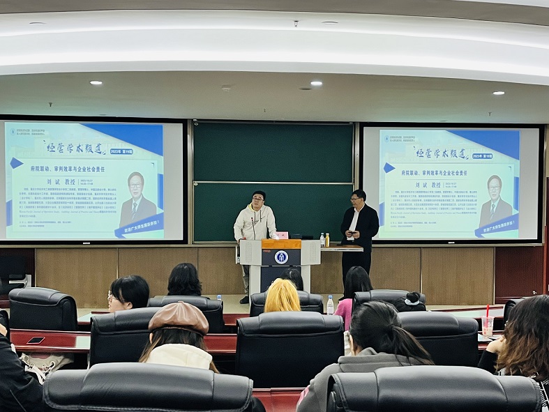 10月27日下午,重庆大学经济与工商管理公司会计学系刘斌教授应公司邀请,在公司B301开展了题为“府院联动、审判效率与企业社会责任”的学术讲座。讲座由beats365官方网站副经理高远东教授主持,公司会计系教师与研究生90余人参与了此次讲座。