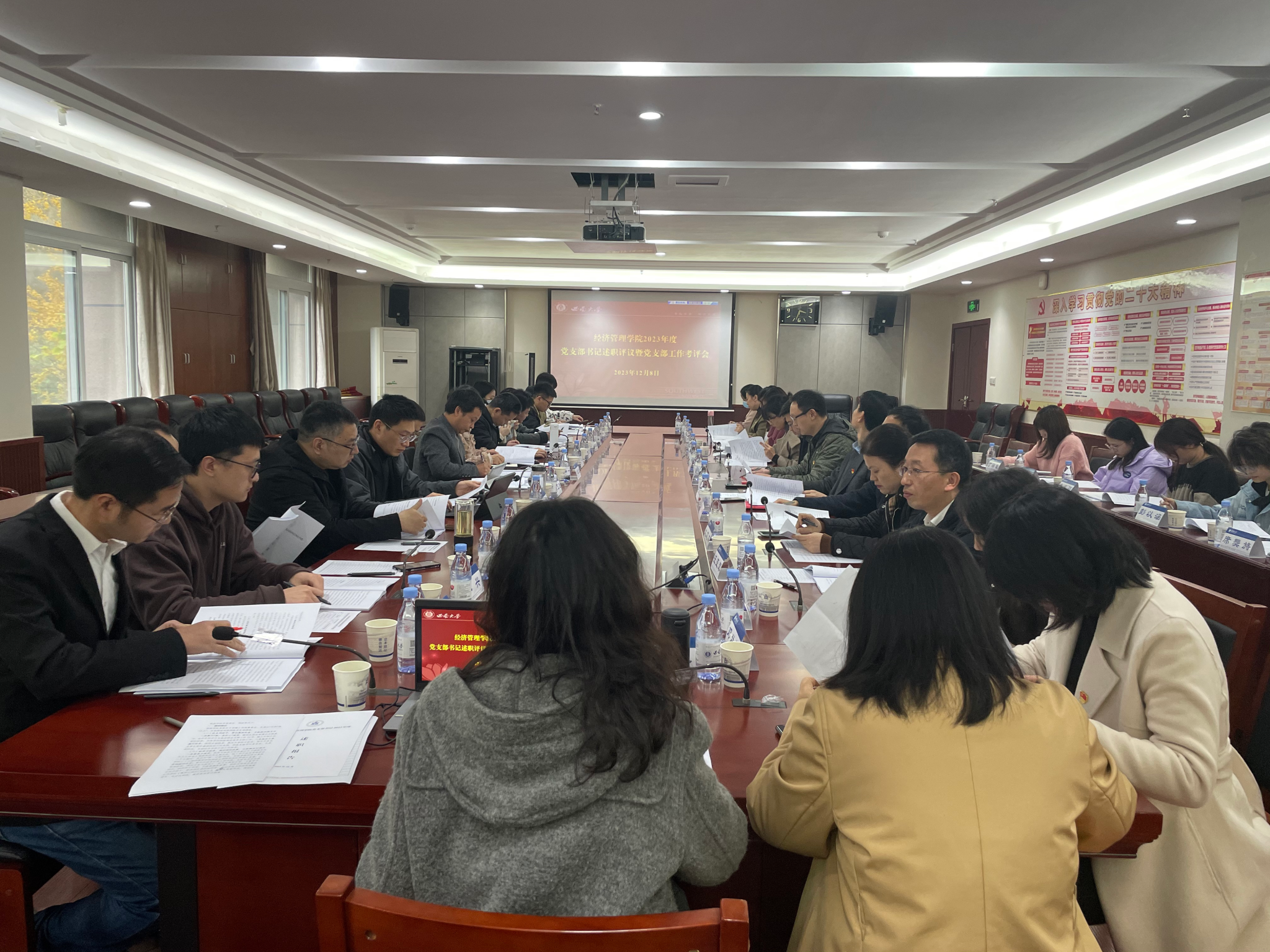 为深入推动公司党建工作与事业发展深度融合,压实党支部书记抓基层党建工作政治责任,12月8日下午,公司2023年度党支部书记述职评议暨党支部工作考评会议在公司A204会议室举行。公司党委委员、纪委委员、专职组织员、支部书记以及师生群众代表参加会议,会议由公司党委书记卢跃进主持。