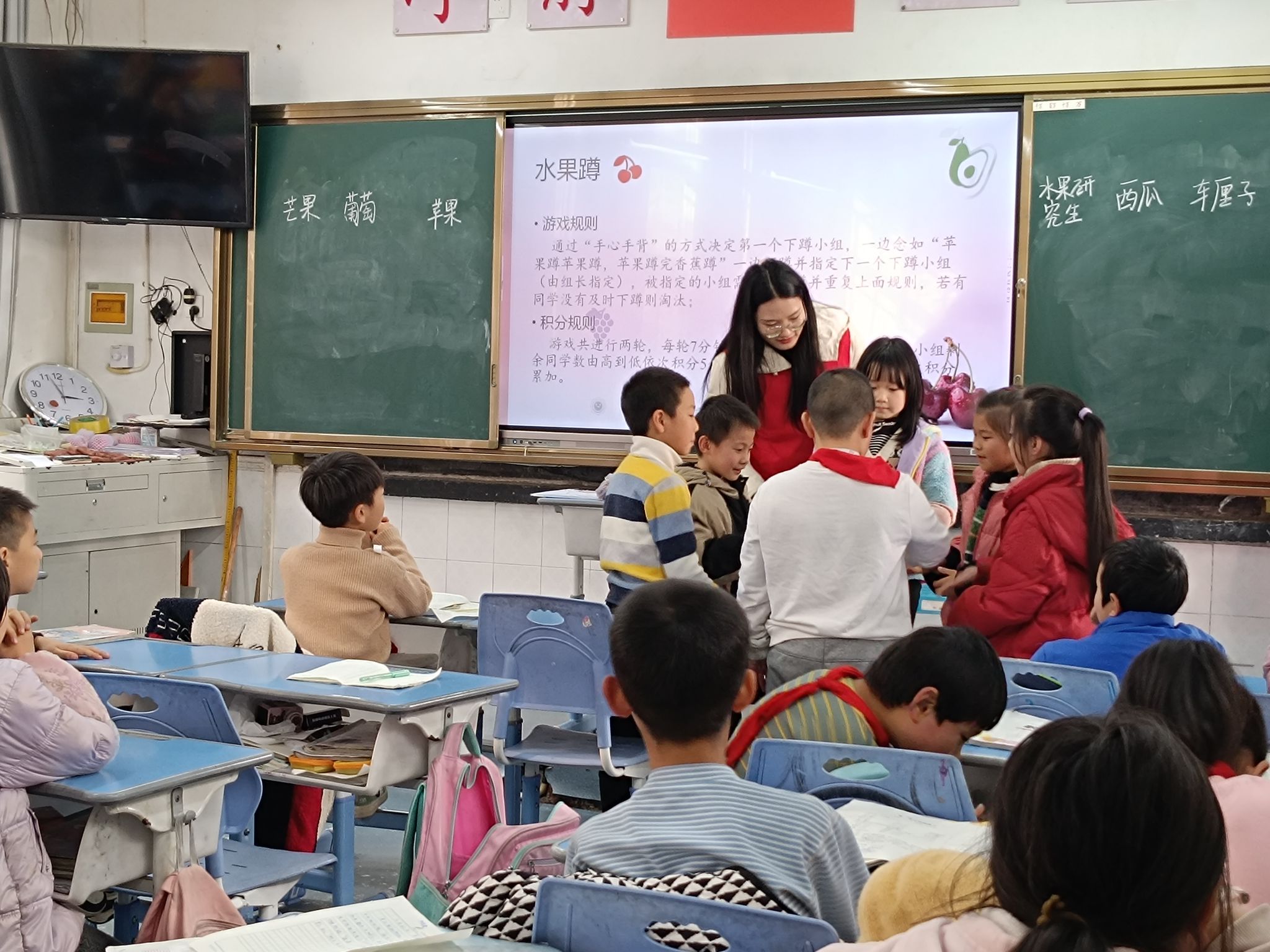实践队成员谭励慧从缓解孩子们的学习压力出发,给孩子们带来了一堂以“水果大比拼”为主题的趣味体育课。课堂分为“水果蹲”和“成语画画接力赛”两个板块,两个活动分别侧重身体运动和团队协作,课程激发了孩子们的运动热情和创造力,培养了孩子们相互配合、团结协作的能力。