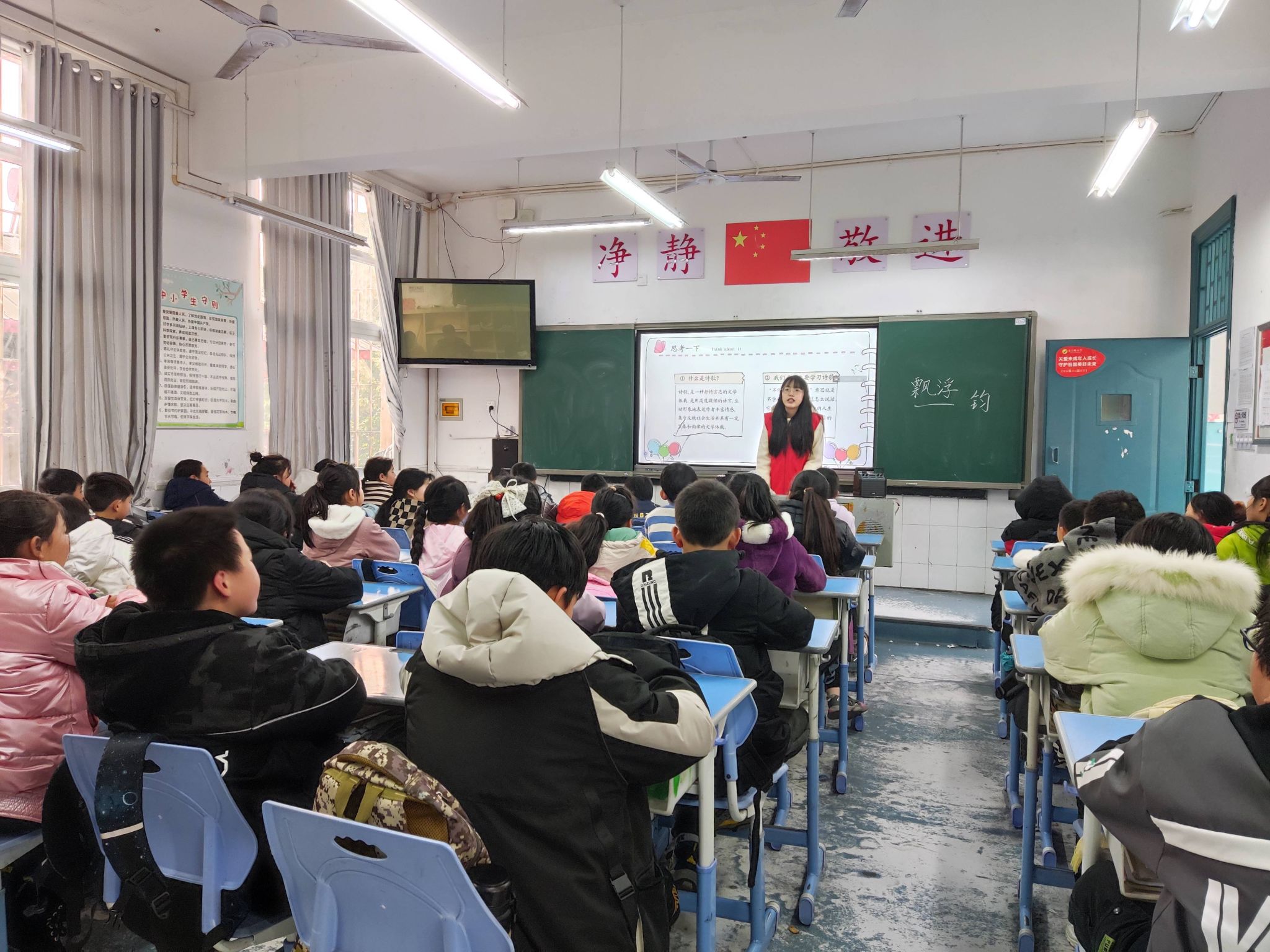 实践队成员赖庆以歌曲《水调歌头》为导入,开展了以“诗歌与光”为主题的课程教学,她鼓励孩子们自由创作诗歌作品,用诗歌来表达自己的情感与思考。课程引入拼贴诗的形式,带领孩子们一起发挥想象力创作诗歌,充分激发员工的文学创作能力和美育想象潜能,从诗歌中体会独特的韵律美、文字美、修辞美。