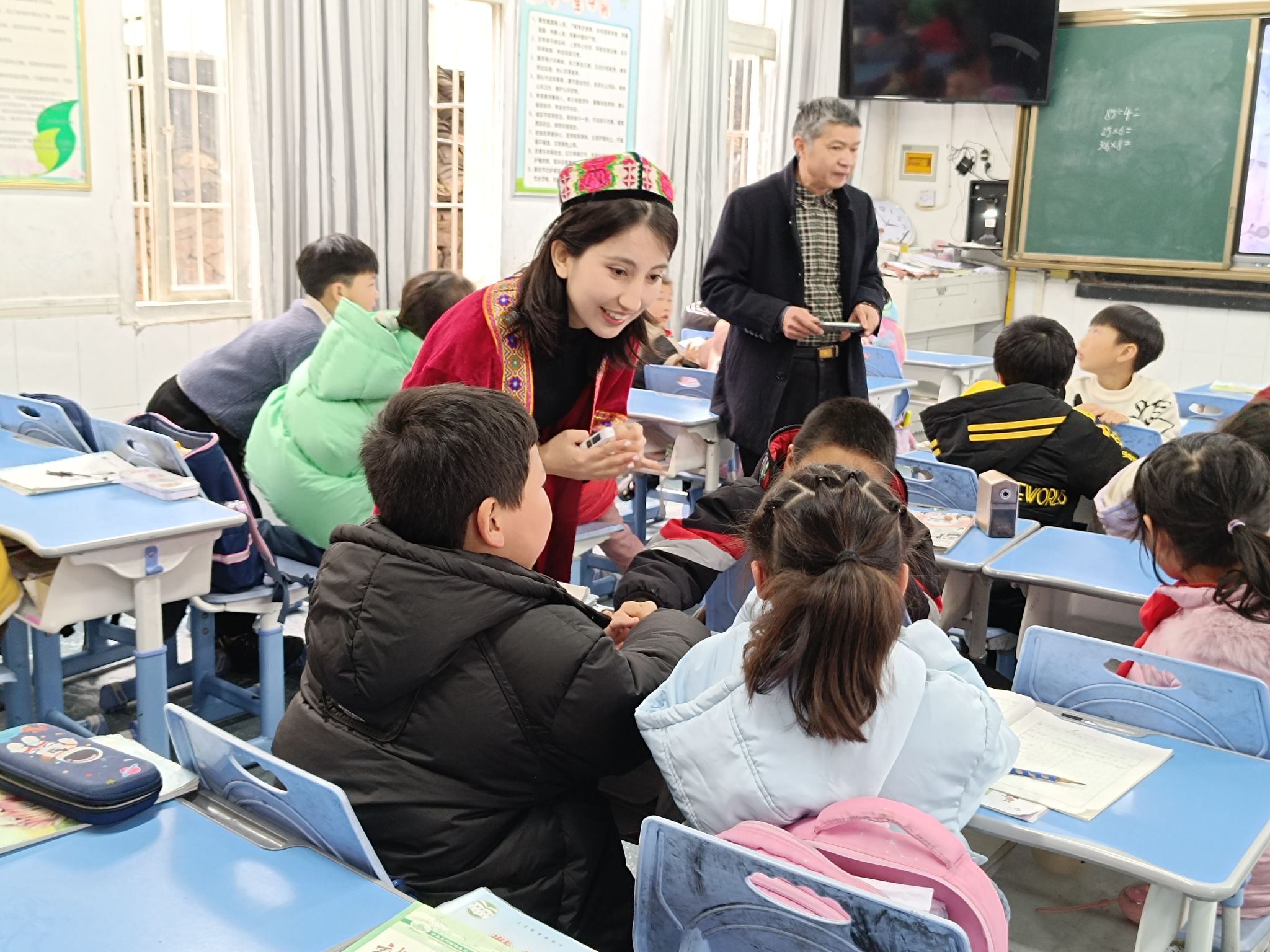 实践队成员布买力开木·苏力丹来自新疆,她身着维吾尔族服饰给孩子们带来了一堂丰富多彩的少数民族文化课。课程通过介绍少数民族文化和讲述阿尼帕妈妈共抚养四个民族19个孩子的故事,让孩子们懂得了在中华民族大家庭中,各民族要像石榴籽那样紧紧抱在一起,民族团结进步之花才能长盛不衰。