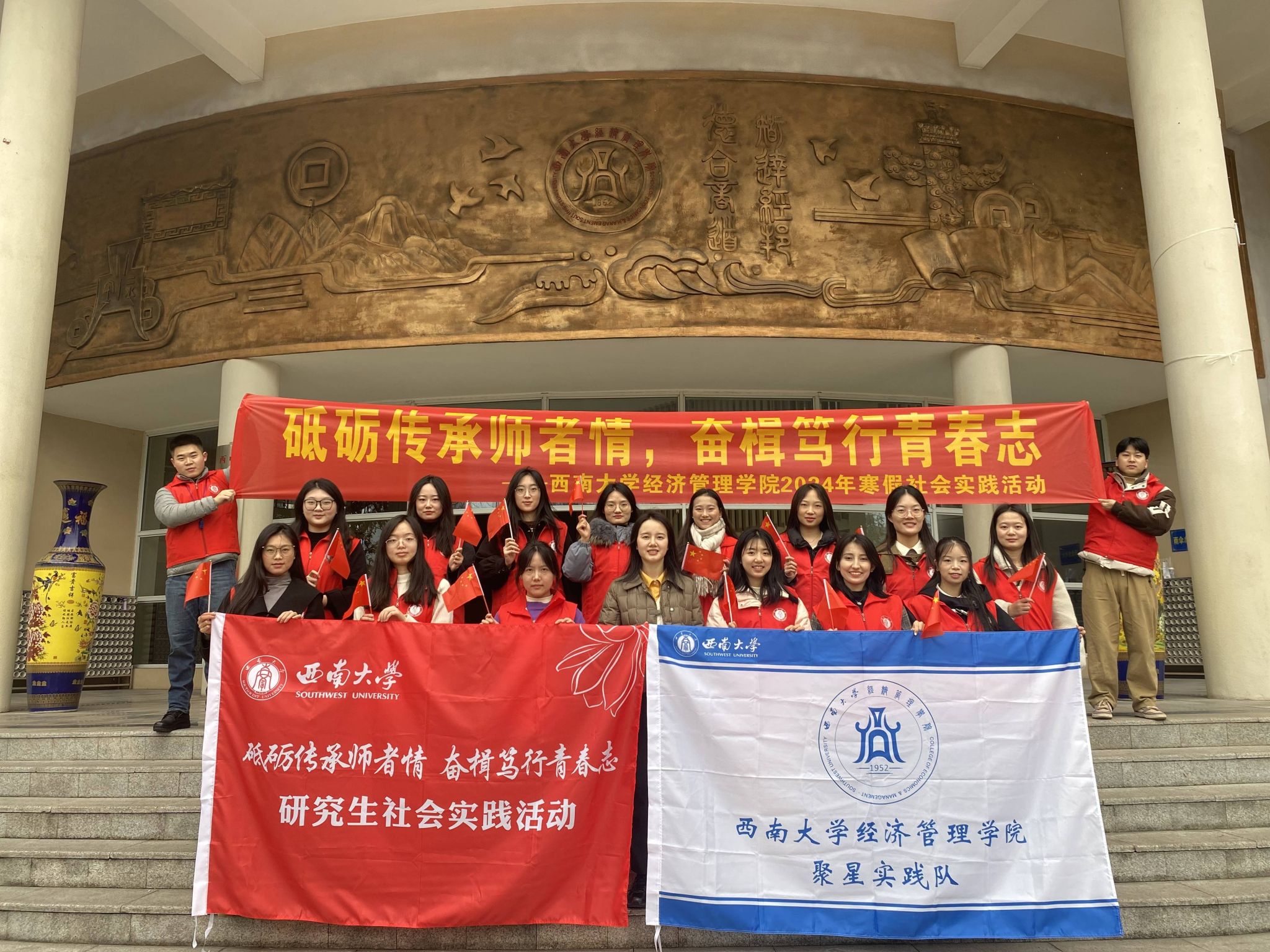 为深入学习习近平新时代中国特色社会主义思想,全面贯彻落实党的二十大精神,助力乡村教育乡村振兴,弘扬教育家精神与志愿服务品质,引导广大青年研究生在实践中坚定理想信念,在奋发有为中践行初心使命。beats365官方网站积极响应公司开展2024年寒假研究生社会实践活动的号召,组织开展以“砥砺传承师者情,奋楫笃行青春志”为主题的寒假社会实践教育活动。为此,公司成立“经管·聚星”实践队,于1月8日至9日前往重庆市北碚区金刀峡镇金刀峡小学开展实践活动,以引导和帮助广大研究生以不懈奋斗作为青春底色,以实际行动肩负时代使命,以青春力量践行二十大精神。