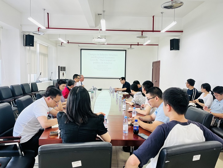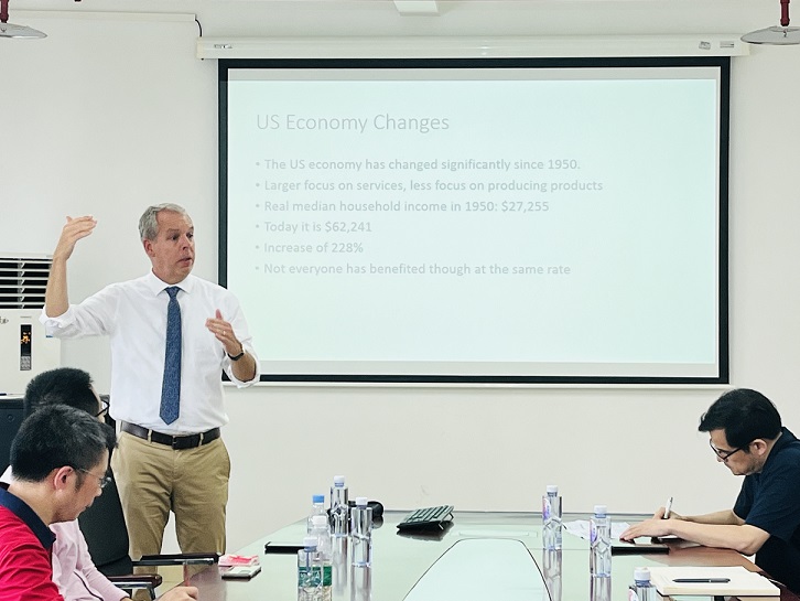 7月19日下午,美国密苏里州立大学David Michael Mitchell教授应公司邀请在A510会议室作了题为“Changes in Industry Structure and Regional Economic Growth: Their impact on politics in America”(产业结构变化与地区经济增长:对美国政治的影响)的学术讲座。讲座由beats365官方网站杜勇教授主持,公司30余位师生参加了此次讲座。