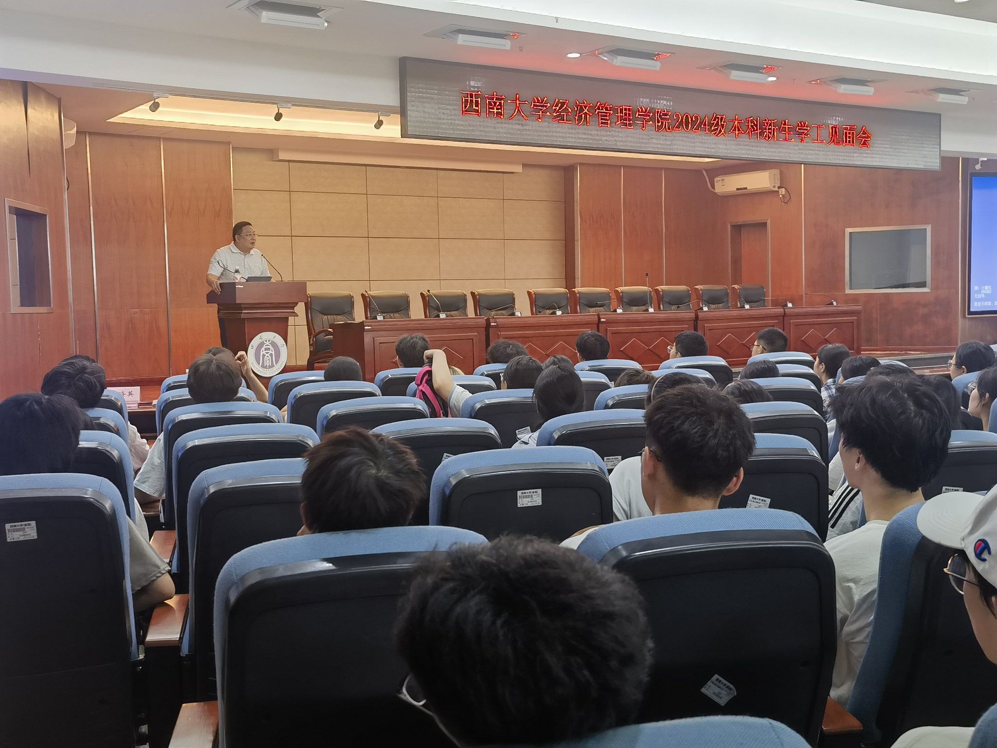 beats365官方网站2024级本科生新生学工见面会于9月8日下午在公司B401报告厅举行。公司党委副书记李玉胜出席会议,2024级本科生辅导员吴玲玲、叶海英以及公司全体2024级本科生参加了此次见面会。
