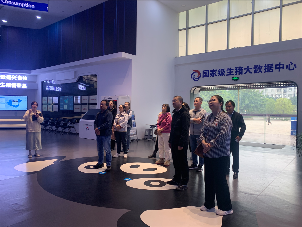 下午,支部党员一行前往国家级生猪大数据中心。该中心是全国首个、目前唯一的畜牧单品种国家级大数据服务平台,肩负着生猪产业数字化、数字产业化的重任。透过智慧屏幕,党员同志们惊叹于生猪养殖统计、生猪价格趋势、生猪产品生产趋势、养殖户和屠宰场数量等一目了然的信息展示。听取了中心工作人员关于生猪养殖、贩运、屠宰“一网式”实时监管的介绍,党员同志们对大数据在生猪产业中的应用表示赞叹。大家坚信,持续深化大数据应用,强化数字赋能与科技创新,将为乡村振兴与经济高质量发展注入不竭动力。