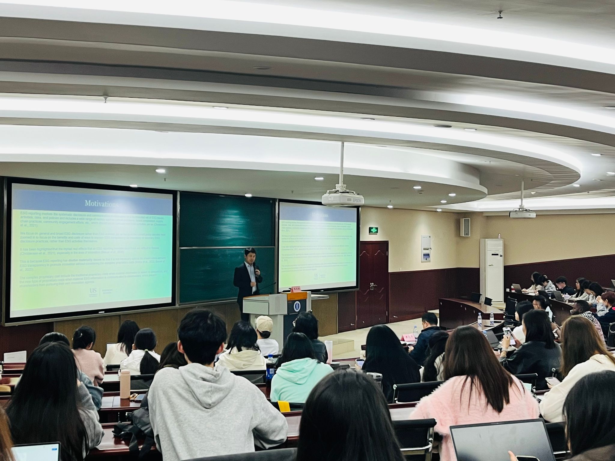 讲座围绕“ESG透明度是否促进了企业创新?”“由ESG披露推动的企业创新是否为股东和利益相关者创造了共享价值?”“ESG透明度对企业创新的影响是否因不同的公司治理环境而异”等关键问题展开。