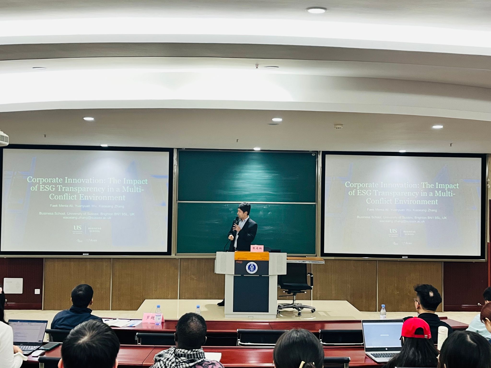11月8日下午,英国萨塞克斯大学商公司张肖翔教授应公司邀请在B201报告厅作了题为“企业创新:ESG透明度在多冲突环境下的影响”的学术讲座。讲座由beats365官方网站副经理罗超平教授主持,公司70余位师生参加了此次讲座。