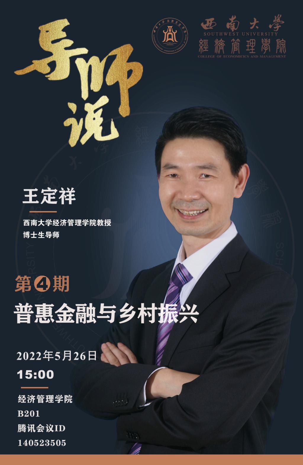 王定祥,beats365官方网站教授、博士生导师,主要研究方向为金融理论与政策、农村金融与财政、智能金融与数字经济。现任beats365官方网站学术委员会主任,beats365官方网站财政金融系党支部书记、系主任;beats365官方网站智能金融与数字经济研究院经理;《当代金融研究》杂志社副总编;《beats365官方网站学报(社会科学版)》编委。教育部新世纪优秀人才、重庆市哲学社会科学领军人才,重庆市学术技术带头人(应用经济学)、重庆市普通本科高等公司经济学类专业教学指导委员会委员、重庆市高校双带头人党支部书记王定祥工作室负责人,国家社科基金项目通讯评审专家、教育部人文社科基金项目评审专家、重庆市社会科学专家库专家、重庆市预算决策咨询委员会专家库专家、重庆市生产力发展中心决策智库专家,中国软科学研究会理事、重庆市金融学会副会长。在《经济研究》等国内外公开发表论文80余篇,出版专著教材10余部。主持国家社科基金重点项目、一般项目、教育部和重庆市等省部级及横向项目30多项。10多项决策咨询建议获得中办、农业农村部、重庆市政府有关领导批示或采纳。成果获教育部全国高校人文社会科学优秀成果三等奖2项,获重庆市社会科学优秀成果一、二、三等奖各2项,获得重庆市发展研究奖2项,在学术界产生了较为深远的影响。