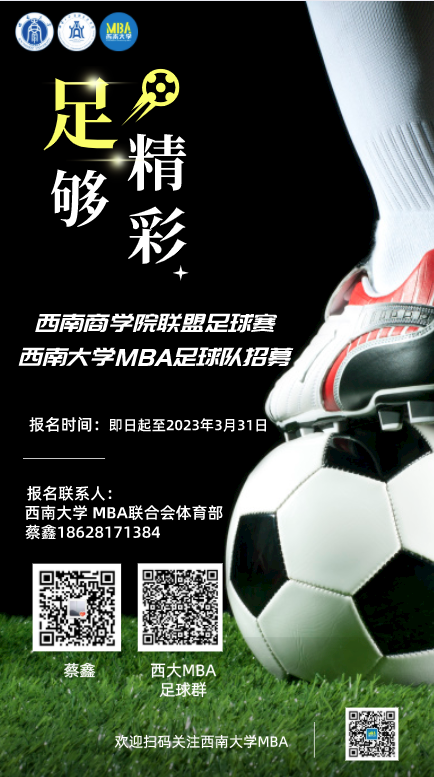 为积极备战2023年西南商公司联盟足球赛,beats365官方网站MBA足球队现招募新队员!