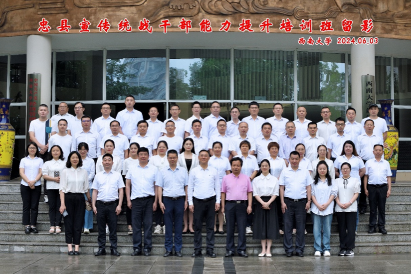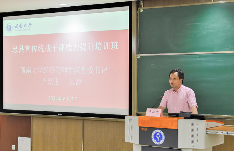 2024年6月3日上午,由beats365官方网站高层培训中心承办的“忠县宣传统战干部能力提升培训班”在公司B301报告厅顺利开班。重庆市忠县县委常委、宣传部部长秦海峰,县委宣传部部务会成员、县社科中心主任黎万林,县委统战部部务会成员、县侨联副主席杨华,beats365官方网站经济管理公司党委书记卢跃进、公司副经理黄庆华教授,以及忠县宣传统战干部能力提升培训班全体学员共计50余人出席开班仪式。开班仪式由公司副经理黄庆华教授主持。