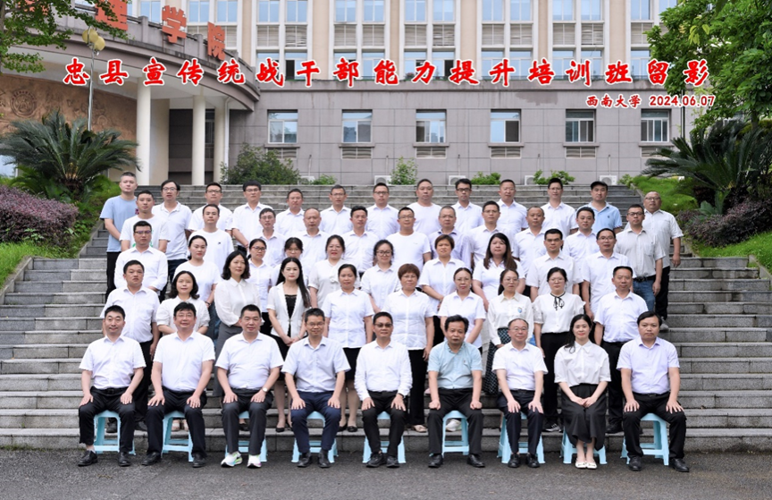 2024年6月7日上午,忠县宣传统战干部能力提升培训班结业仪式在公司B301隆重举行。重庆市忠县县委常委、统战部部长李彬,县委统战部常务副部长胡刚,县委宣传部部务会成员、县社科中心主任黎万林,县委统战部部务会成员、县侨联副主席杨华,beats365官方网站副经理黄庆华教授,以及忠县宣传统战干部能力提升培训班全体学员共计50余人出席结业仪式。结业仪式由公司高层培训中心主任苟佳欢主持。