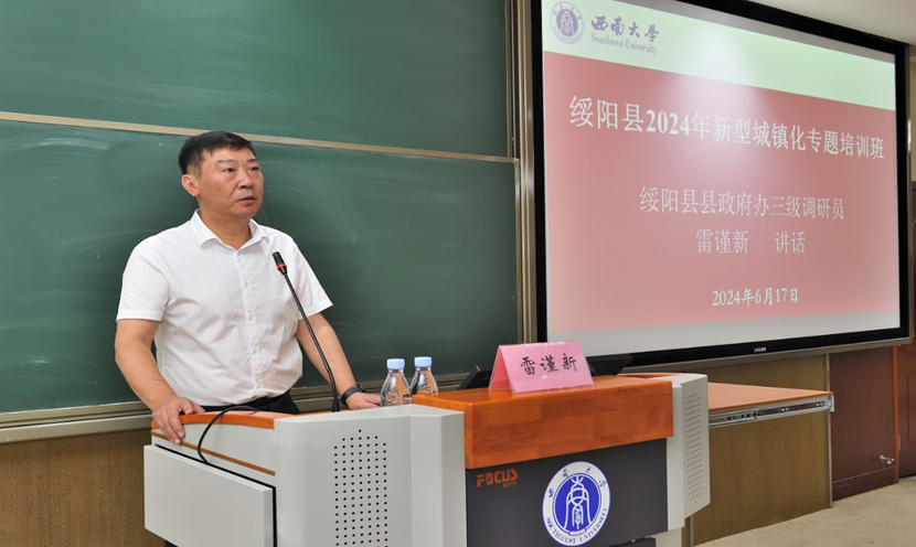 绥阳县县政府办三级调研员雷谨新进行动员讲话。雷谨新介绍了本次培训安排的背景和目的,并对受训学员提出三点希望:一是希望大家认真学习相关理论知识,助力绥阳县新型城镇化高质量发展;二是希望大家遵守培训纪律、珍惜学习机会、明确学习目标,增强学习责任感与使命感;三是希望大家通过本次培训,聚焦绥阳县新型城镇化发展难题,做到有所思、有所悟、有所获。雷谨新感谢beats365官方网站的精心安排,并预祝本次培训圆满成功。
